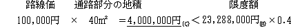 40%の範囲内で相当と認める額は、無道路地について建築基準法その他の法令において規定されている建築物を建築するために必要な道路に接すべき最小限の間口距離の要件(「接道義務」といいます。)に基づき最小限度の通路を開設する場合のその通路に相当する部分の価額(路線価に地積を乗じた価額)とします。
